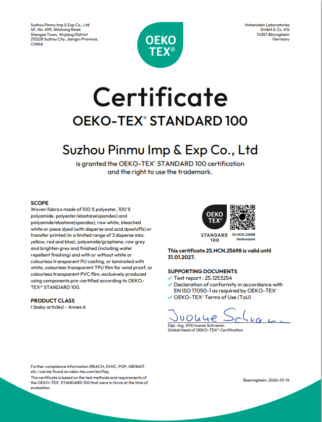 We support certification requirements based on fabric type and market needs, helping you meet customer, regional, and regulatory expectations with confidence.